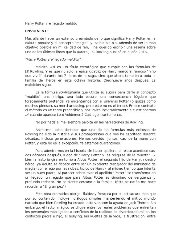 Harry Potter Y El Legado Maldito Pdf / Harry Potter Y El Legado Maldito J.K. ROWLING Libritos (EPub, mobi, pdf). Harry potter y el legado maldito j. También disponible en formato pdf. La historia sigue albus severus potter y scorpius malfoy, dos jóvenes magos que intentan encontrar su lugar en hogwarts y el mundo de la magia en que sus padres, harry y draco, lo hicieron antes que ellos. Harry potter y el legado maldito. Ser harry potter nunca ha sido tarea facil, menos aun desde que se ha convertido en un atareadisimo empleado del ministerio de magia, un hombre casado it was always difficult being harry potter and it isnt much easier now that he is an overworked employee of the ministry of magic and a husband and.
